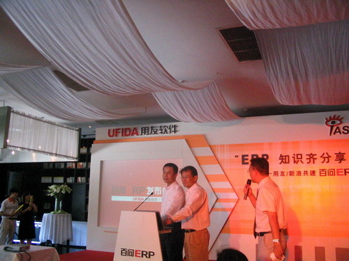 在发布会上,新浪网副总裁周树华先生与大家共同分享了双方在“百问ERP”网站建设合作方面所取得的一些成果、愿景和规划蓝图。周树华表示,新浪网一直致力于中国信息化的建设事业,此次与用友公司在中国ERP普及方面的合作,是顶级软件厂商与门户网站的一种全新合作模式,也必将进一步促进整个行业的不断发展。为此,新浪网在技术平台的搭建、网站的运营维护以及网站的长远规划上,投入了大量的人力和物力,希望在把网站打造成业界精诚合作典范,同时也能为中国企业的信息化进步做出更多的贡献。据用友公司教育市场总监朱春燕介绍,可以用8个字概括“百问ERP”网站的特色:专注、互动、简单、实用。