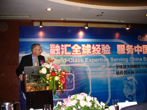 Infor11月10日在北京召开新闻发布会,以“融汇全球经验 服务中国企业”为主题正式宣布Infor全面进驻中国,公司主席兼首席执行官Jim Schaper先生及首席技术官兼市场高级副总裁Tom Lynch先生亲自莅临现场致辞,Jim先生在会上表示,中国是Infor重点关注的3个海外市场之一,Infor致力于帮助中国企业成为世界级制造商,为中国企业提供包括供应链计划、关系管理、需求管理、ERP、仓库管理、市场导向的分销和业务智能等多领域解决方案。