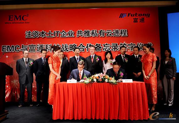 EMC董事会副主席Bill Teuber和富通科技董事 长陈健签署战略合作备忘录