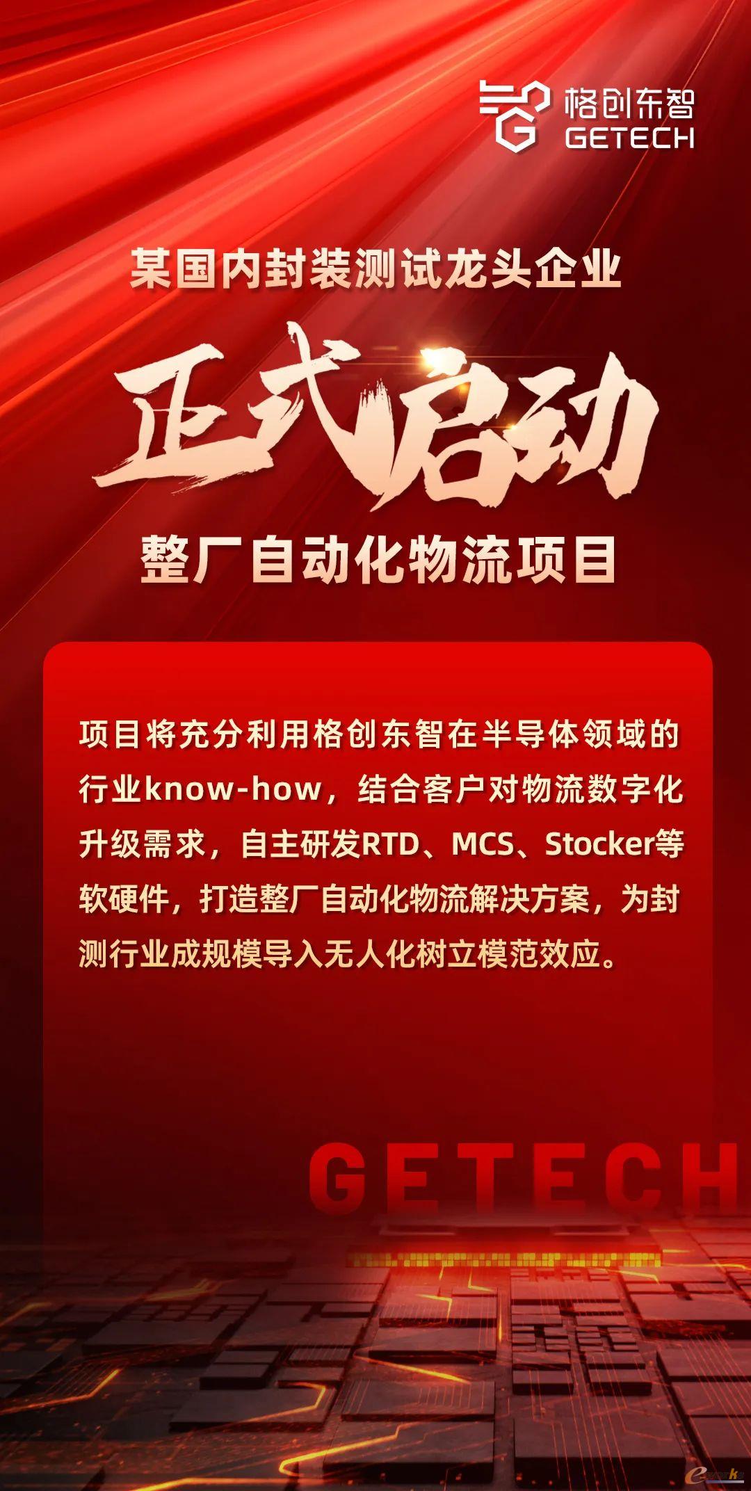 日前,格创东智某国内封装测试龙头企业自动化物流项目正式启动。项目将充分利用格创东智在半导体领域的行业know-how,结合客户对物流数字化升级需求,自主研发RTD、MCS、Stocker等软硬件,打造整厂自动化物流解决方案,为封测行业成规模导入无人化树立模范效应。