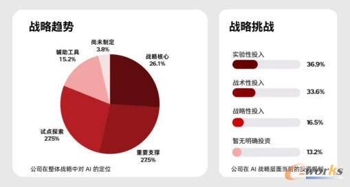 报告深刻指出,2025年是中国企业AI应用迈向规模化落地的关键转折点。企业对AI的认知已从前沿技术转变为战略核心,AI的价值不再局限于局部优化,而是全方位重塑企业竞争力。报告中的“三分格局”揭示了企业AI战略成熟度的差异,既有将AI视为战略核心的先锋企业,也有处于试点探索阶段的观望者,更有将其仅视为辅助工具的保守派。这种多元化的战略定位,凸显了企业在AI赛道上的分化态势。