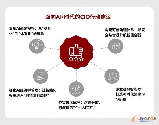 这些建议涵盖了从战略视野重塑、技术底座夯实、组织智能力激发到可信治理体系构建的全方位内容。例如,CIO需要推动企业建立清晰的AI战略路径与可持续投资规划,建设开放、可演进的“企业AI工厂”,打造AI时代的学习型组织,并以安全与合规护航智能创新。这些建议为CIO在AI时代引领企业智能化转型提供了明确的行动框架,助力CIO成为企业智能化战略的核心推动者。