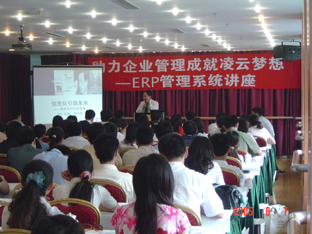 清华紫光咨询服务事业部邀请到了北大光华管理学院EMBA、SAP(中国)公司EPR专家刘古权先生作了题为“信息化引领未来”的精彩讲座。针对园区内物流、制造企业及大型企业的分支机构分布众多的情况,紫光咨询安排了独特的演讲模式及互动方案,在生动幽默的气氛中,与会来宾或凝神听讲、或频频点头、有不少来宾还飞快的作着笔记,会场中不时的传来阵阵的笑声。