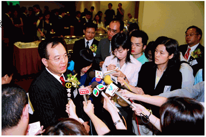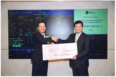 上市当日,金蝶国际主席兼行政总裁徐少春先生率公司高层赴港参加了上市仪式。作为继去年TOM科技转板之后的又一家转板成功的科技股,金蝶国际受到了媒体的广泛关注与热烈追捧。此外,为了回报广大社会人士长期以来的厚爱与支持,金蝶国际还向香港公益金捐赠港币100万,倍受瞩目。
