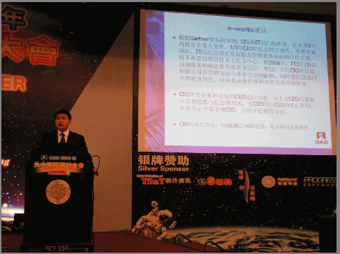 面对如此巨大的市场,QAD早在1994年既进入中国并专注与制造业市场,经过10多年的发展,QAD已经在汽车、医药及医疗服务、食品加工、电子产品及消费品等行业中积累了大量客户。“能够和中国制造业精英共聚一堂,是QAD引以为豪的事情。”QAD总裁兼创立人Pam Lopker女士表示:“中国是世界制造业的中心之一,而今后5年将是中国制作业和国际产业链接轨的重要阶段,QAD公司将继续为中国制造业提供最先进的ERP解决方案和后续服务咨询,为中国制造企业更好地与参与国际化竞争尽绵薄之力。”