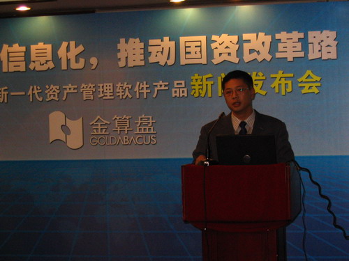 金算盘软件有限公司昨日在北京召开新闻发布会,首次开发出我国新型的资产管理软件,并借此成为我国资产管理软件领导厂商以后,再次隆重推出自主研发、基于平台和互联网应用的更新一代资产管理软件eAM。