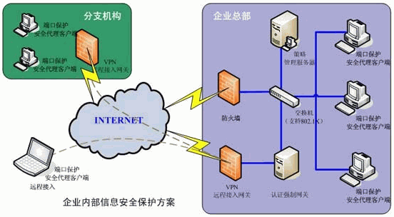 通过安全代理客户端,用客户端软件提供高效的主机保护和入侵检测能力。策略管理服务器可以制定和分发企业的安全策略,而终端端口保护可以保护个人终端的资料不会通过USB设备、活动硬盘、光盘刻录机等手段泄露出去;同时防止病毒等有害数据传入网络。认证强制网关是指验证远程用户的安全策略执行情况,阻止所有未授权用户访问企业内部网络。