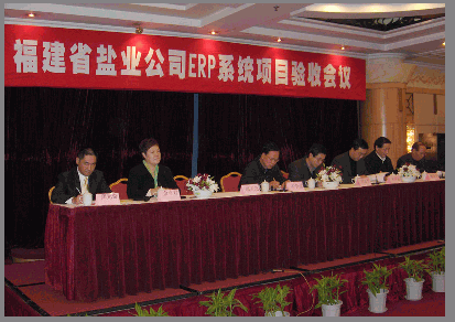 福建省盐业公司总经理郑元奇先生和金蝶集团高级副总裁金卓君女士出席了本次验收会,并在项目验收协议上签字确认。福建省经贸委、福建轻纺(控股)责任有限公司的领导及来自中国盐业总公司、中盐上海市盐业公司、江苏省盐业集团有限责任公司、浙江省杭州市盐业公司、湖南省轻工盐业集团有限责任公司、湖南省湘衡盐矿、陕西省盐务管理局等单位的盐行业信息化专家及福建盐业公司的信息化小组成员,各级公司关键用户的负责人与会共同见证了这一辉煌的时刻。