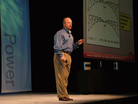 SolidWorks公司CEO John McEleney先生进行了主题发言。他回顾了CAD的40年间的发展历程及SolidWorks公司1993年成立以来所取得的巨大成绩,并重点介绍未来发布的SolidWorks 2007版的亮点功能,同期重点推荐了SolidWorks解决方案合作计划伙伴之一NextEngin公司的最新产品。