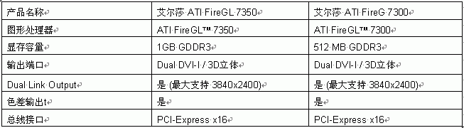 艾尔莎ATI FireGL V7350和V7300专业绘图卡的规格见下表
