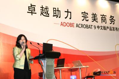 Adobe公司中国区董事总经理刘珍妮女士首先发表了主题演讲,她表示:面对顺息万变的市场竞争环境,如何更有效地协作与交流引起了国内企业的高度关注,并且他们对突破现有通讯方式的沟通需求也是前所未有,Acrobat 9中文版针对国内用户增加了许多实用功能,能够大幅简化商业运作环节、提高工作效率,从而使企业获得更大的效益。