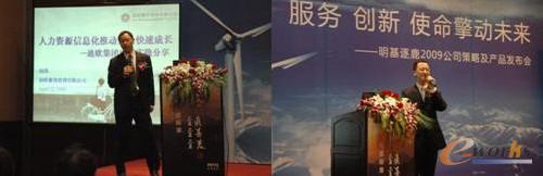 在发布会上,明基逐鹿产品部总监王洪志先生就产品以及服务的整体规划与发展进行了概述,他表示:“产品的专业与优化,将全面推动企业成长,见证企业成功。在2009年,逐鹿将创新产品及服务模式,力争成为行业内新兴产品模式及服务市场的领导品牌!”。随后,明基逐鹿新一代的协同知识门户产品(greenOffice 5.0)及新一代人力资源产品Guru eHR4.0盛大推出,这两大产品对明基逐鹿乃至中国管理软件领域都具有里程碑式的意义。在协同知识门户领域:在持续“成就智慧型组织”的价值主张的引领下,新的产品为我们带来了新的绿色环保理念,实现了六大应用革新和六大技术革新,并全面支持3G环境下的移动签核。在人力资源管理领域:全面支持两岸三地集团化人力资源管理;全面优化了薪酬计算引擎,效能领先同类产品50%以上;国内率先实现全业务流程驱动;新的决策支持模型帮助用户提升30%系统使用效益。