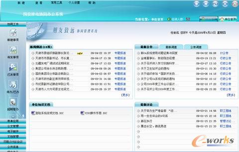 用友致远A6的引进,首先为国投津电打造了一个统一的办公平台。通过A6协同独有的二元化工作流中的模板协同,致远实施工程师为国投津电设计了最符合电力企业管理特色、最切合企业管理特点的审批流程和模板,日常办公活动中所需要的各种申请审批表单都在这个统一办公平台上调用、填写和流转、审批,企业的各项规章制度也都由此得到落实和贯彻。同时,公司内部的公文审批、流转也都通过A6轻松实现,并实现了来文登记、档案归档与共享。此外,用友致远A6协同的上线,还为国投津电提供了一个信息发布和共享的平台。在这个平台上,党群信息、业务信息、新闻信息等均可按照指定范围进行发布,第一时间显示在员工的桌面上,让员工能够及时了解公司发生的各种动态和业内情况。