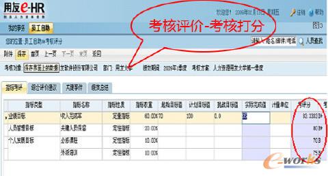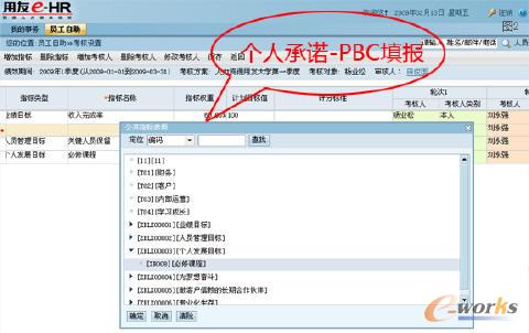 用友eHR5.5系统设立全面绩效管理解决方案,支持对企业不同类型的各类各层级人员、组织的绩效考核方案,所有的员工登陆系统填写个人绩效考评指标,明确业绩目标(财务指标、非财务指标)、人员管理指标、个人发展指标等等,将公司经营战略层层分解,落实到具体的部门和岗位,通过绩效管理推动经营战略执行。