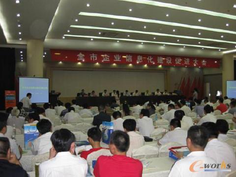 会议由市长助理倪建刚主持。市委常委、市委秘书长、市信息化工作领导小组办公室主任宗大全做了如何将政府引导与市场结合、如何将典型示范与整体推进结合的工作报告。北京并捷信息技术有限公司首席专家杨景宜应邀在主席台上就坐,并做了《机电企业ERP解决方案》的报告,受到与会者的欢迎。会后还与一些企业的负责人做了进一步沟通。