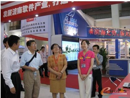 工信部软件服务业司孙文龙处长在济南市信产局领导带领下参观华天软件展位