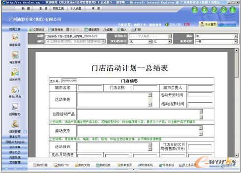 为了更好地对促销活动进行管理,迪彩在A6协同中设置了“门店活动计划——总结表”,通过此一表单,迪彩区域管理者对各地门店所发起的各种活动的情况、缘由、竞争对手情况、自身活动促销结果等各种信息都可一目了然。同时,此活动总结将通过区域财务经理、发起者部门主管、分公司经理等人审批,让主管领导可以得知促销情况,并对下一步的促销工作做出安排。这将极大地提高分公司管理层对分散在各地门店的掌控力度,并对各种费用使用情况做到心中有数。