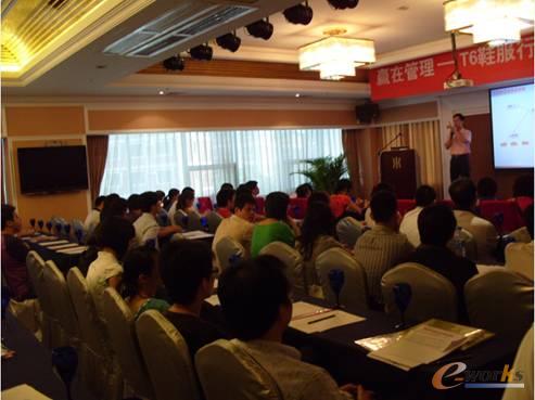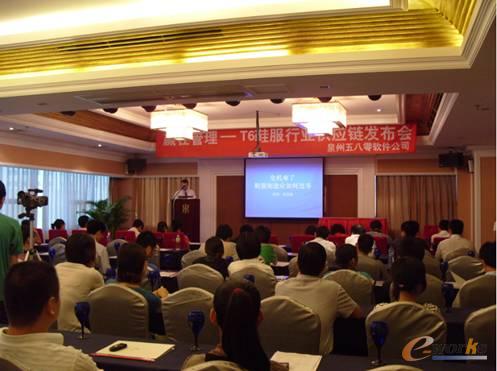 8月15日,用友T6产品泉州授权营销机构-泉州五八零软件公司在晋江荣誉酒店隆重召开了 “赢在管理-T6鞋服行业全供应链产品发布会”。本次会议一共邀请了泉州(晋江、石狮)的近百家企业、共120余位嘉宾到会,到会参加的主要为企业的营销、财务负责人,也有部分企业老总亲自带队参加。