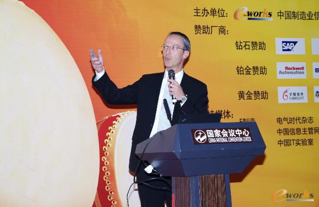 图1:Aras公司副总裁Andreas Mueller先生介绍“Aras PLM技术创新与服务价值”