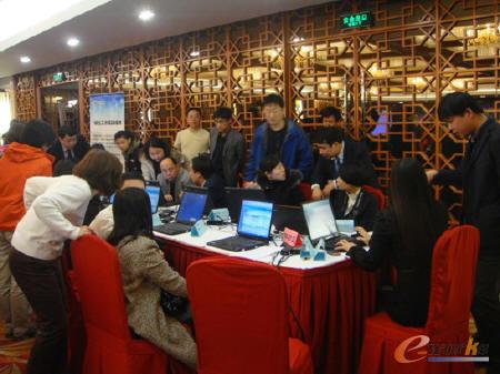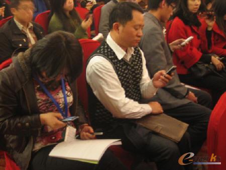 与会者在现场通过电脑和手机体验协同带来的绿色工作