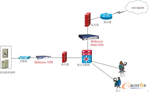 保险公司的服务器群是构建综合业务处理系统的核心,它存储着保险公司大量重要的数据信息,一旦遭受恶意软件的攻击,将对保险公司造成严重的损失。本方案中,在服务器群之前部署了稳捷网络BeSecure Web安全网关,内网用户及外网用户设备访问服务器参保人员数据、保单数据等内容时,所有的数据均须通过安全网关的扫描,有效避免了木马、病毒、间谍软件等对服务器群的攻击。