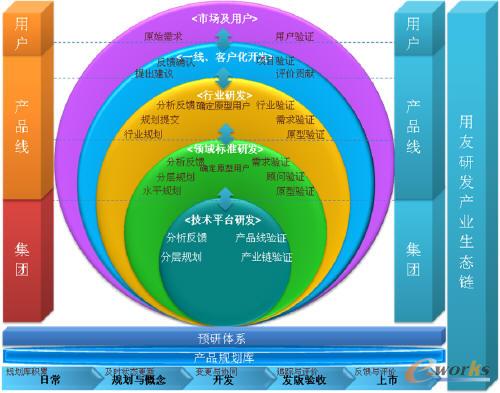 如此,用友形成了360度全维度的研发体系,其中最亮点的创新在于用友将用户融入了用友研发产业生态链中,而用户是其中最重要的角色。
