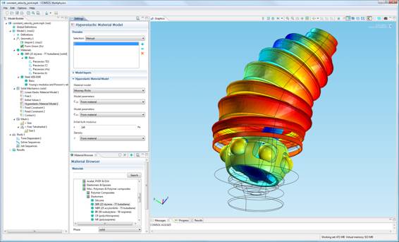 利用COMSOL Multiphysics V4.0模拟一个Rzeppa恒速连接器。模型的所有设置都可以通过模型生成器以及与其相连的设置窗口直接完成。图形窗口显示了当轴角达到最大值时连接器的位移情况。此模型由Metelli S.p.A提供(Cologne,意大利)