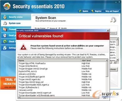 在此之后它会自己下载并安排一个名为“Security essentials 2010”的虚假反病毒软件。