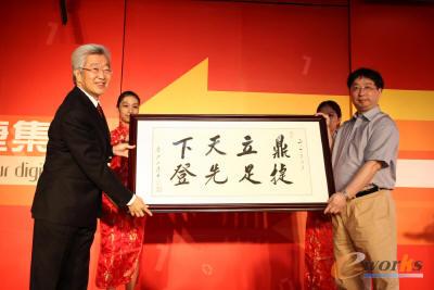鼎捷集团董事长孙霭彬(左)与上海市闸北区区委常委常务副区长许谋赛(右).