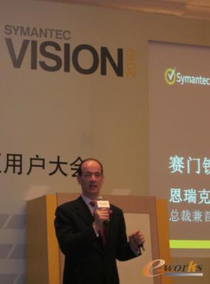 在大会的主题演讲中,赛门铁克公司总裁兼首席执行官恩瑞克?塞伦(Enrique Salem)说:“赛门铁克正在引领一个充满信心的新时代,即一个个人及企业组织能够在互联世界中满怀信心地生活、工作并获得成功的未来。为了确保这一新时代的安全,赛门铁克一直在对一系列解决方案进行整合,这些解决方案将身份和设备安全、信息保护、情境和相关性以及云计算带来的益处组合到一起。我们相信,这些解决方案将成为人们在互联世界中满怀信心的关键使能者。”