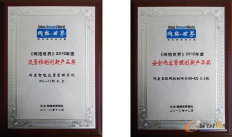 近日,在刚刚结束的《网络世界》2010年度创新产品/解决方案奖”评选活动中,凭借在2010年进行的技术创新和性能改进方面获得的卓越成果,网康科技上网行为管理产品NS-ICG和智能流量管理系统NS-ITM 双双获得《网络世界》2010年度创新产品奖,成为网络应用层管理市场的技术先锋。
