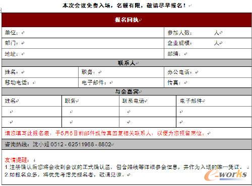 本次会议免费入场, 席位有限!立即注册, 或者拨打活动咨询热线:0512-62511988-8802 (沈小姐)