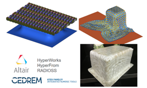 在本次交流中,Jean Baptiste Mouillet先生为与会者深入介绍了铺层/编制复合材料,以及零件的成型模拟分析的相关内容,包括:RADIOSS 复合材料理论、HyperForm/RADIOSS复合材料成型工艺仿真、MultiScale Designer 多尺度设计软件、复合材料参数对标方法、基于KTEX软件的中尺度(Meso-Scale)复合材料成型分析方法。以及复合材料零件拓扑优化——成型仿真——碰撞模拟分析的一整套流程。