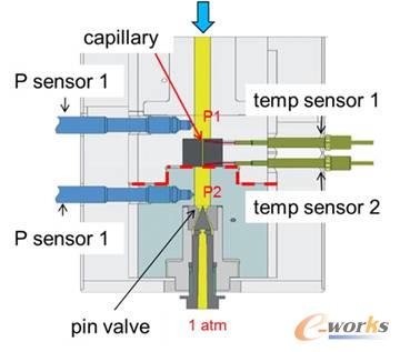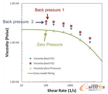 在制造超薄射出成型产品的过程中,为了完整充填,必须使用高射出速度,可能产生高充填压力;在高压下,高分子链的自由体积受到压缩,导致黏度上升,造成流动阻力上升。在产品保压阶段,熔胶处于高压、低剪切率的状态,压力对黏度的影响会更重要。此时的压力分布将影响黏度分布,而黏度也会影响压力传递能力,因此在进行模流分析时,必须准确掌握压力对黏度的影响,才能准确地仿真保压行为及产品的收缩翘曲量值。