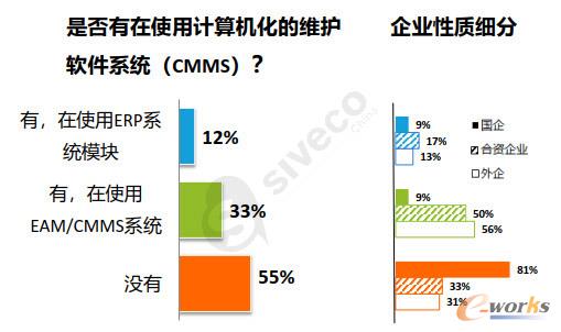 超过半数的被调查者(其中超过80%国有基础设施或公共事业企业)表示从来没有使用过CMMS系统。而即便企业已落实维护管理控制机制和工具(如定期召开维护改进会议、制定明确的绩效指标等),却仍无法达到符合决策支持的预期效果。