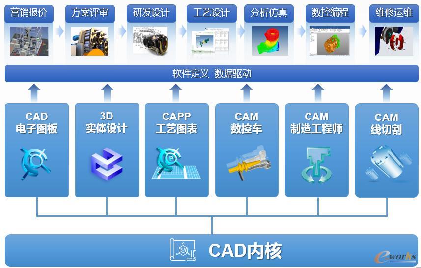 CAXA CAD系列中的3D、2D、CAPP、CAM等多专业产品,以及与PLM的无缝集成方案,为企业数字化研发及管理带来全新的体验。