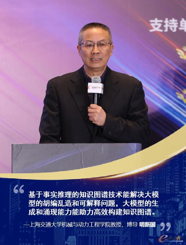 上海交通大学机械与动力工程学院博导明新国教授发表了主题为“工业智能大模型赋能企业研发设计创新”的演讲。明新国教授指出,工业智能大模型是大模型与工业机理的结合,大模型和知识图谱具有互补性,基于事实推理的知识图谱技术能够解决大模型的胡编乱造和可解释问题,大模型的生成和涌现能力能够帮助快速、有效的构建知识图谱。他还进一步讲解了大模型与知识图谱融合的路径及案例、工业智能大模型赋能研发设计的应用实例。