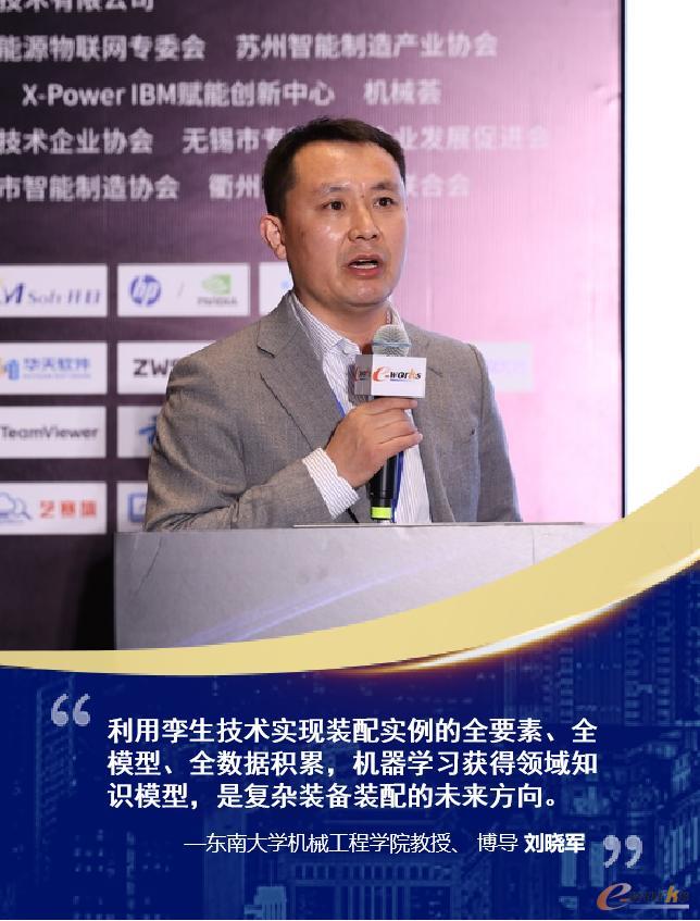 东南大学机械工程学院博导刘晓军教授以“测试/测量数据驱动的装备精益生产管控技术”为题进行了分享。刘教授指出,复杂装备生产管控缺少一种能够将多种技术和领域融合集成的手段,数字孪生通过数字化方式创建物理对象的虚拟模型,并基于数据、算法、模型等来监控、仿真、验证、预测、控制物理对象全生命周期过程,为装备精益生产管控提供了有效手段。他认为利用孪生技术实现大量装配实例的全要素、全模型、全数据积累,并通过机器学习获得领域知识模型,是复杂装备高精度装配的重要方向。
