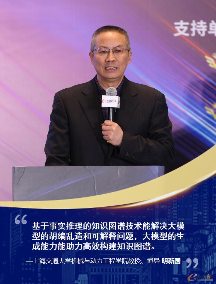 上海交通大学机械与动力工程学院博导明新国教授发表了主题为“工业智能大模型赋能企业研发设计创新”的演讲。明教授指出,工业智能大模型是大模型与工业机理的结合,大模型和知识图谱具有互补性,基于事实推理的知识图谱技术能够解决大模型的胡编乱造和可解释问题,大模型的生成能力能够帮助快速、有效的构建知识图谱。他还进一步讲解了大模型与知识图谱融合的路径及案例、工业智能大模型赋能研发设计的应用实例。
