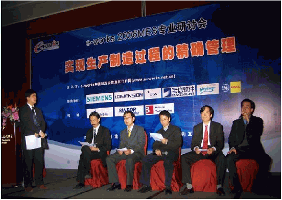 e-works总经理黄培博士主持了关于MES的现场互动讨论,邀请了5位MES专家就MES的行业特性、MES的实施、MES与ERP软件应用的相关问题进行了现场研讨,收到与会观众的一致好评。