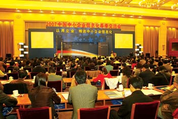 2007年4月11日,由国家发展和改革委员会中小企业司、国务院信息化工作办公室推广应用组、信息产业部信息化推进司指导,中国电子信息产业发展研究院主办的2007中国中小企业信息化春季交流会在北京京西宾馆成功召开。针对中小企业信息化建设中的热点问题,国家和地方信息化主管部门有关领导、各地方中小企业局领导、各大服务机构、专家和著名IT供应商等与会者济济一堂,展开了为期一天的讨论。会议的热烈程度或许正反映了中小企业信息化建设的热潮。
