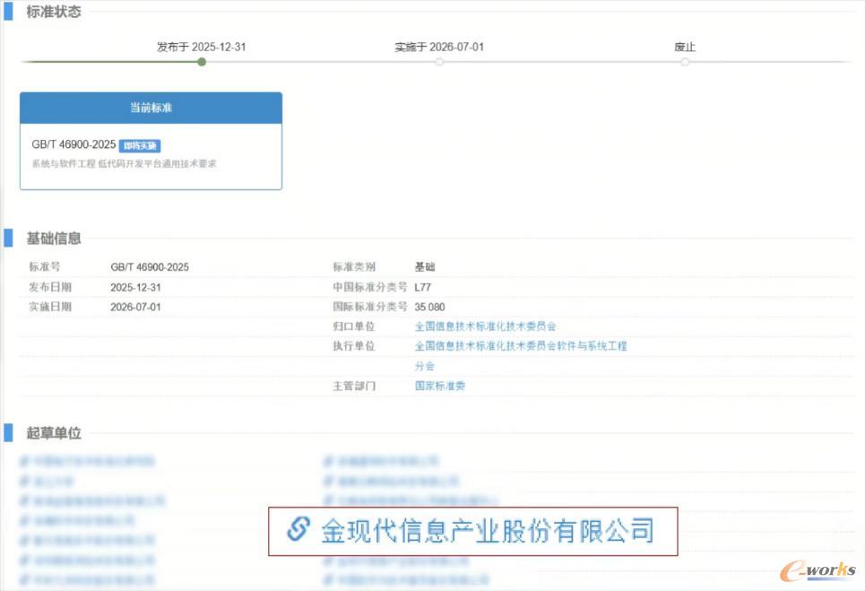 行业标准的构建离不开头部企业的技术沉淀与经验输出。金现代作为本次国标的参与起草单位,在低代码领域深耕多年,技术实力行业领先。公司已相继参编国内首个低代码开发平台标准、首个低代码大模型标准等核心标准,是国内首批通过通院测评的18家低代码厂商之一,是IDC认可的“AI+低代码中国市场代表厂商”之一。此次参与国标制定,既是对公司技术积累的认可,也是金现代践行行业责任、推动产业规范发展的体现。