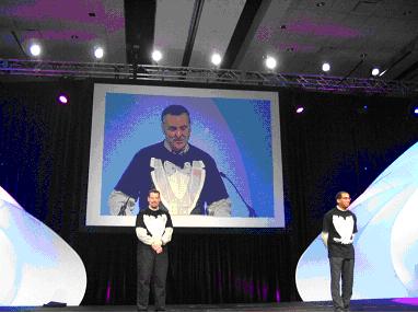 1月31日上午,大会议厅座无虚席。聚光灯把合作伙伴的标志打到墙上,节奏强劲的音乐合着炫目的灯光,营造着欢快的气氛。8:30,大会正式开始。公司COO Jeff Ray先生首先登场,他简要回顾了过去一年SolidWorks公司在产品、技术、用户、合作伙伴、教育、培训认证等方面的迅速发展情况。