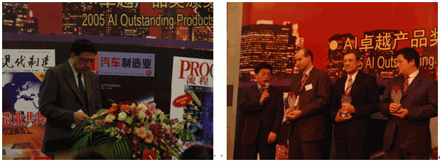 2005年11月30日——德国弗戈媒体集团旗下的AI《汽车制造业》杂志在上海新亚汤臣洲际大酒店正式公布了“2005年AI卓越产品奖”暨“2005年汽车制造业百家优秀装备供应商(TOP100)”的获奖产品及企业,并举行了隆重的颁奖典礼。此次活动是由AI《汽车制造业》杂志主办,中国汽车工业协会、中国内燃机工业协会、中国模具工业协会等单位给予了大力的支持。