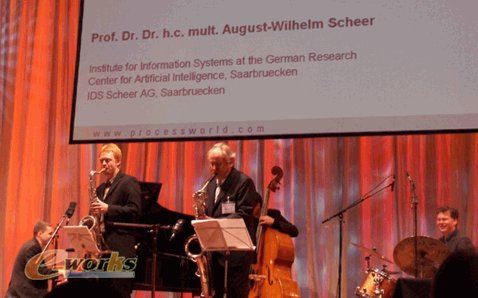 Scheer教授的演讲以爵士乐队的演奏开场,并在每个部分插入一首爵士音乐,形式别具特色。他用交响乐和爵士乐来比喻传统固化的企业应用软件和基于SOA架构的新型应用软件的变化趋势。