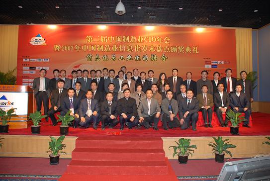 国家863计划先进制造与自动化技术领域专家委成员浙江大学祁国宁教授、中国工业自动化系统与集成标准化委员会副主任清华大学范玉顺教授、中国机械工业联合会副秘书长宋晓刚、中国机械工程学会副秘书长王瑞刚、中国机械工业企业管理协会常务理事金达仁、航天科工集团信息管理中心主任王琳、航天科技集团信息化总体部主任刘海滨、中船重工集团科技部副部长罗季燕、中国南方机车车辆工业集团公司信息中心主任符刚、中国机械工程学会机械设计分会理事赵敏、赛捷集团中国区总经理周强等颁奖嘉宾分别为获得“2007中国制造业杰出及优秀CIO”、“2007中国制造业信息化杰出及优秀供应商”、“2007年度中国制造业信息化应用领先及最佳实践”“ 2007年中国制造业信息化优秀推荐产品”等七项奖项进行了颁奖。