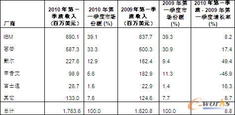 表一:亚太区:2010年第一季度服务器厂商收入预计(单位:美元)