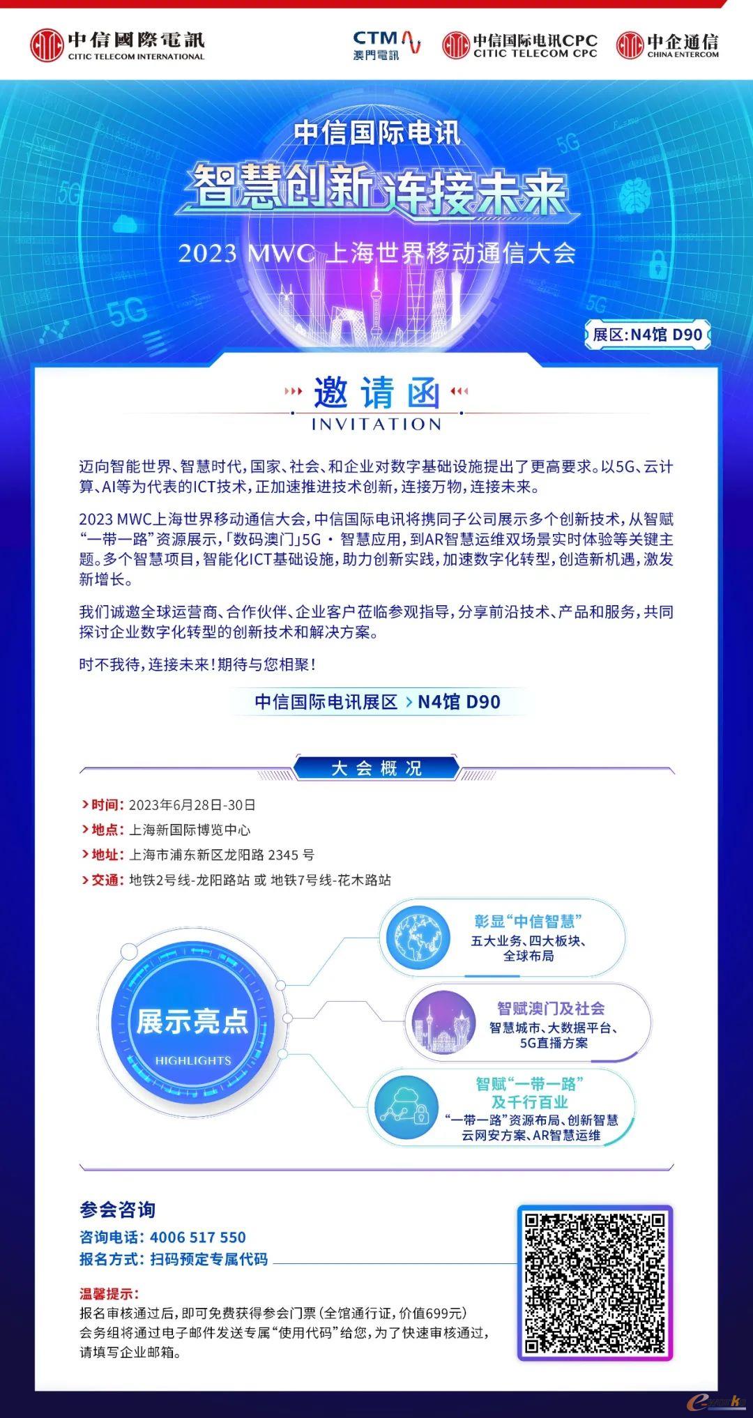 时不我待,连接未来!诚挚邀请您莅临中信国际电讯展区,期待与您相聚!