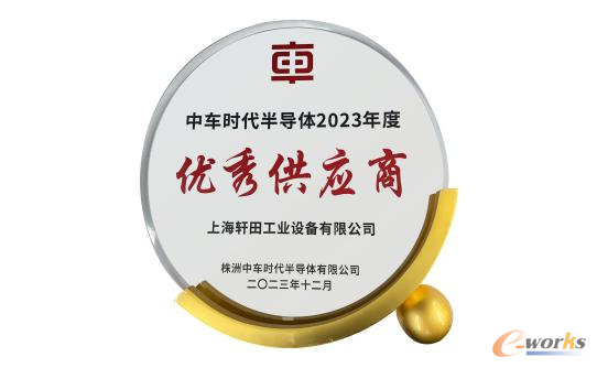 凭借过硬的产品质量、完善的服务体系以及良好的客户合作基础,轩田科技荣膺中车时代半导体2023年度“优秀供应商”称号。