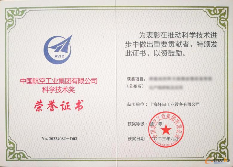 凭借持续技术创新能力、研发能力和技术领先能力,轩田科技荣膺中国航空工业集团有限公司“科学技术奖”。